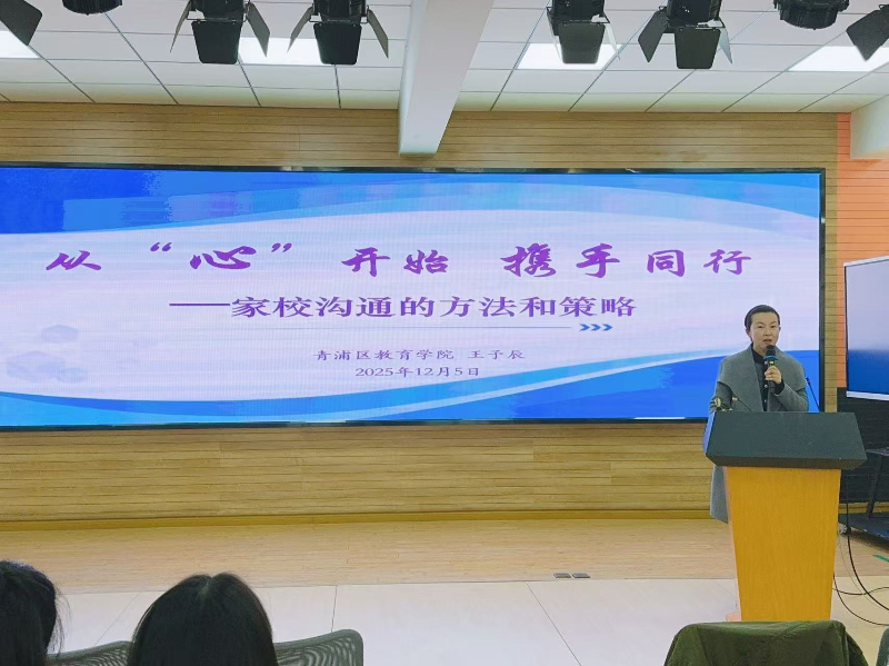为提升导师专业素养,活动特邀青浦区教育学院家庭教育研究指导中心王予辰老师,作《从“心”开始 携手同行——家校沟通的方法和策略》主题微讲座。讲座聚焦沟通原则与实用技巧,结合实例,为导师们搭建家校桥梁、凝聚教育合力提供了扎实而具体的方法指导。