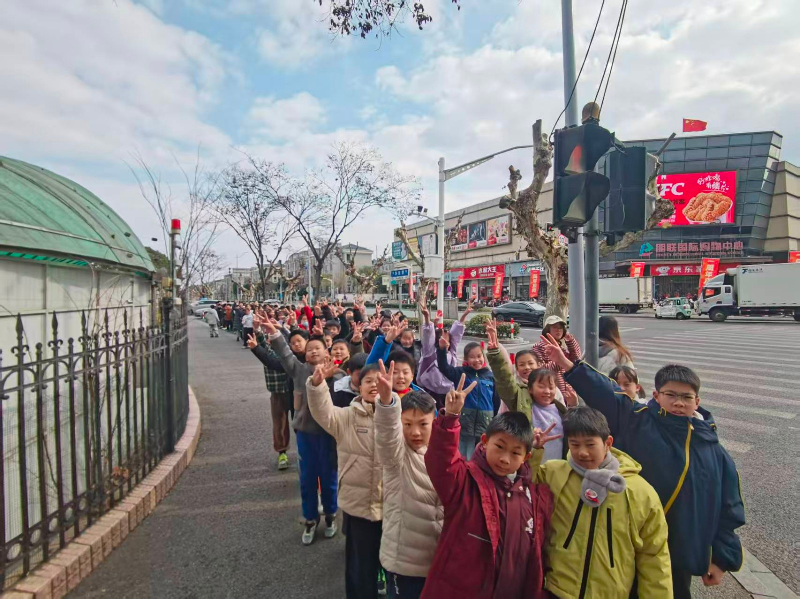 长长的队伍像一条朝气蓬勃的龙,沿着人行道有序前进。孩子们整齐有序,红扑扑的小脸上洋溢着兴奋。路程约两公里左右,无一人掉队,用实际行动践行了绿色出行。