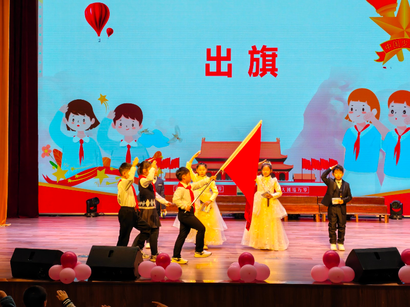 随后,全体少先队员庄严肃立,出旗仪式庄重举行,队员们面向队旗敬队礼,齐声高唱《中国少年先锋队队歌》,嘹亮的歌声回荡校园,尽显少年意气与赤诚初心。