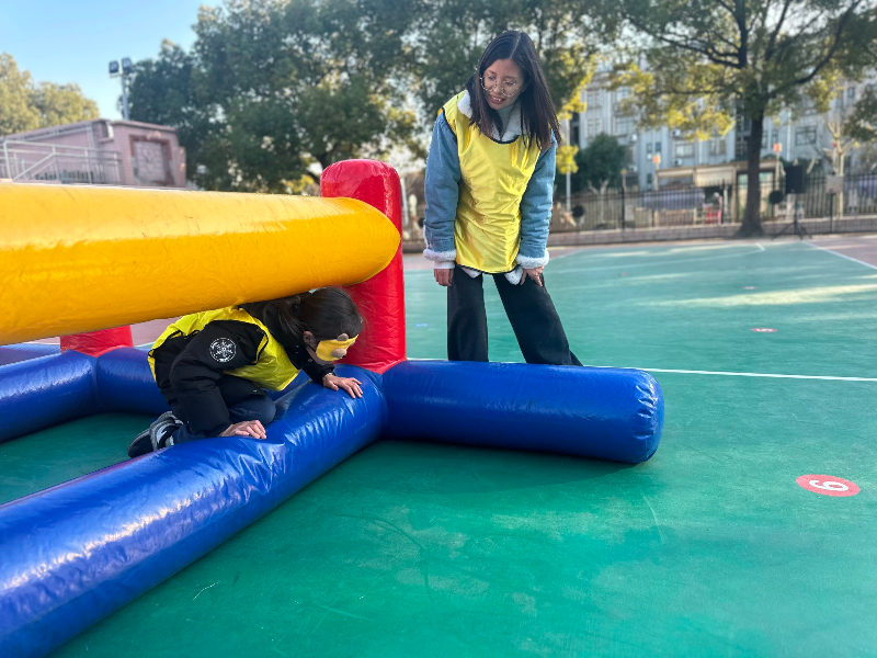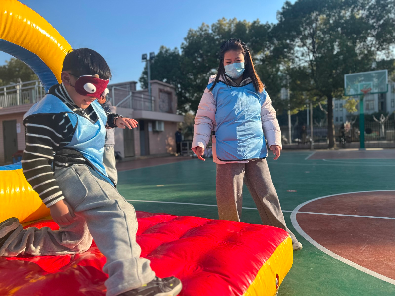 在“盲人方阵”大型充气障碍赛道上,角色互换带来了全新的体验。孩子蒙眼,家长用语言指引孩子穿越障碍,这不仅锻炼了孩子的抗挫力,更让家长深刻体会到引导与信任的重要性。