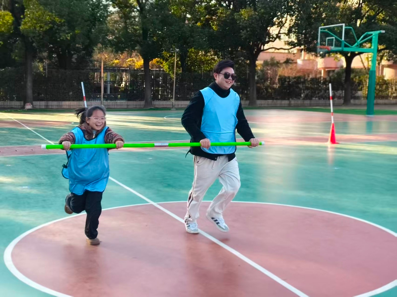 最后的“旋风接力赛”充分展示了团体协作的魅力。家长和孩子手持道具杆奋力奔跑,为了团队的荣誉齐心协力,体验到了齐心协力带来的团体动力。
