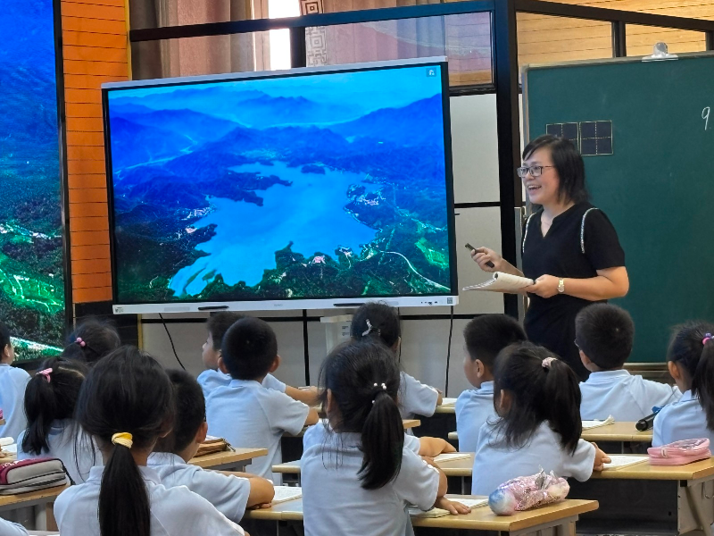 首先,学员们观摩了两堂展示课。第一堂课由华新小学张蕊老师执教《日月潭》第一课时。张老师依据课程标准及单元教材制定课堂教学目标,并根据教学目标精准施教。她在学生了解日月潭地理位置的基础上,先引导学生整体读文,感知日月潭景色的美丽,接着聚焦问题“日月潭美在哪儿”开展一二自然段的教学。学生在自读自悟的基础上,交流自己的想法,张老师则结合学生的回答,适时开展字词教学,读懂句意的教学,同时借助多媒体,引导学生深入感受日月潭周围环境美、湖水的颜色美和形状之美。