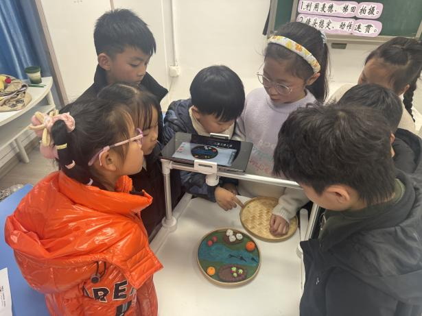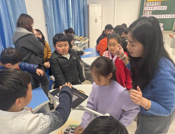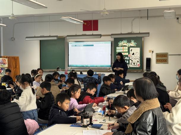 现场教学观摩环节中,两位教师带来了精彩的教学展示课冯怡老师执教书画版二年级美术第二单元《禾下乘凉》中的第三课《农田小卫士》,回忆前两节课的教学视内容在我们的大自然中,有哪些可爱的小动物在默默保护着我们的家园,保护着我们的农田,视频导入水墨动画之后欣赏齐白石的作品《蛙声十里出山泉》这幅画,并介绍画里的石头、水、线条等元素,而二年级的这节课,核心是让学生以玩的心态接触国画,把毛笔当成小玩具,用儿童化的语言引导他们,让他们在玩乐中初步养成用笔用墨的习惯,这节课就算成功了,将单元目标细化落实到课堂环节,充分体现了核心素养导向下的教学创新;张雪滢老师展示《春意盎然》,以定格动画把前三节课充分的联系起来做成一个动画,特别吸引小朋友,从视频介绍什么是定格动画,再到如何操作定格动画,让孩子们在玩中学,学中玩。展现了单元教学中跨课时衔接的精妙设计。两节课例聚焦新课标要求,为参会教师提供了可借鉴的校本化单元教学实践样本。