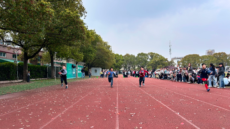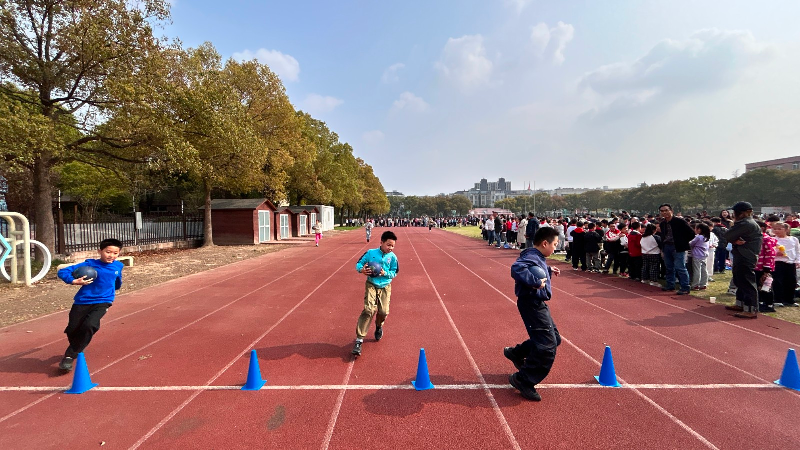 随着裁判老师一声清脆的哨声,决赛正式开始。参赛的同学们立刻全身心投入比赛,双手稳稳抱着皮球,像离弦的箭一样冲出起点,步伐矫健、速度飞快,脸上洋溢着坚定的神情。折返时,同学们灵活转身,稳稳抱球,丝毫不敢松懈;交接棒环节,大家配合默契、动作流畅,一句句“加油”“快一点”的提醒,彰显着团队的凝聚力。一二年级的小选手们虽然速度不及高年级同学,但他们毫不怯场,奋力奔跑,用稚嫩的身影诠释着拼搏的意义;三四五年级的选手们则展现出更强的竞技状态,你追我赶、不甘落后,赛道上不断上演着精彩的比拼。